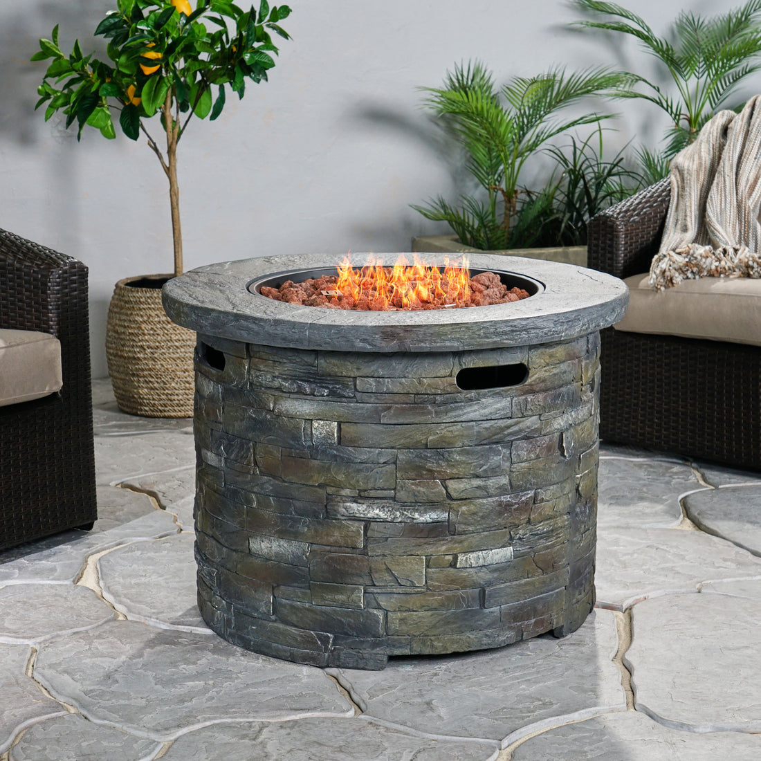 35" 40000 Btu Firepit Round Stone Gray Magnesium Oxide