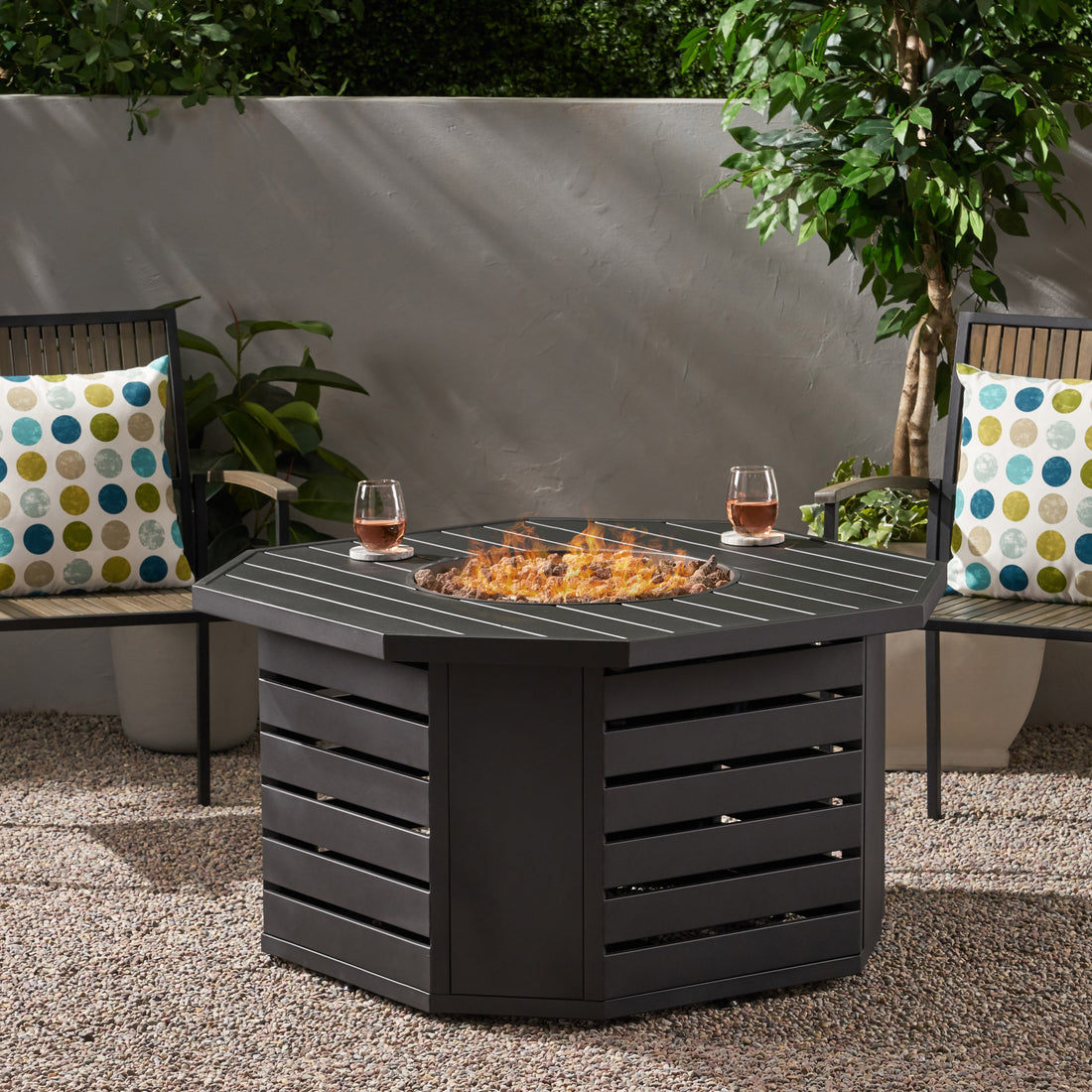 Octagon Iron Fire Pit 50000Btu Black Iron