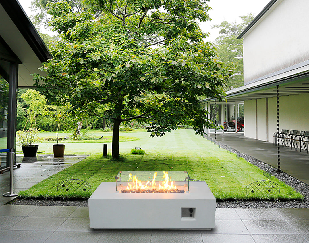 52 Inch Outdoor Concrete Propane Gas Rectangle Fire Pit Table In Antique White Color Antique White Garden & Outdoor American Design,Contemporary,Luxury,Modern Fiberglass Concrete