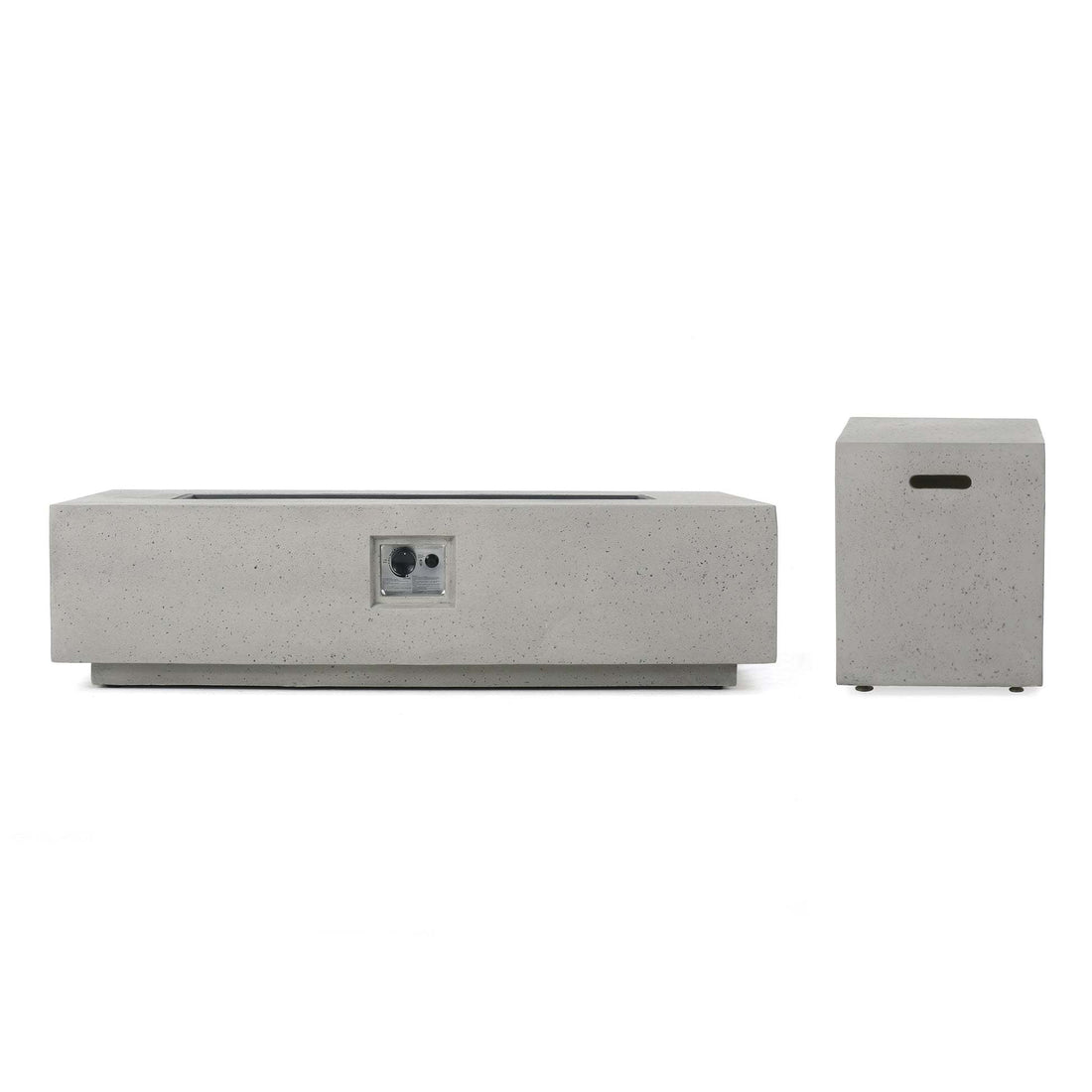 Name: 40" Outdoor 40,000 Btu Rectangular MgO Concrete Propane Fire Pit, Light Grey (Tank Cover...