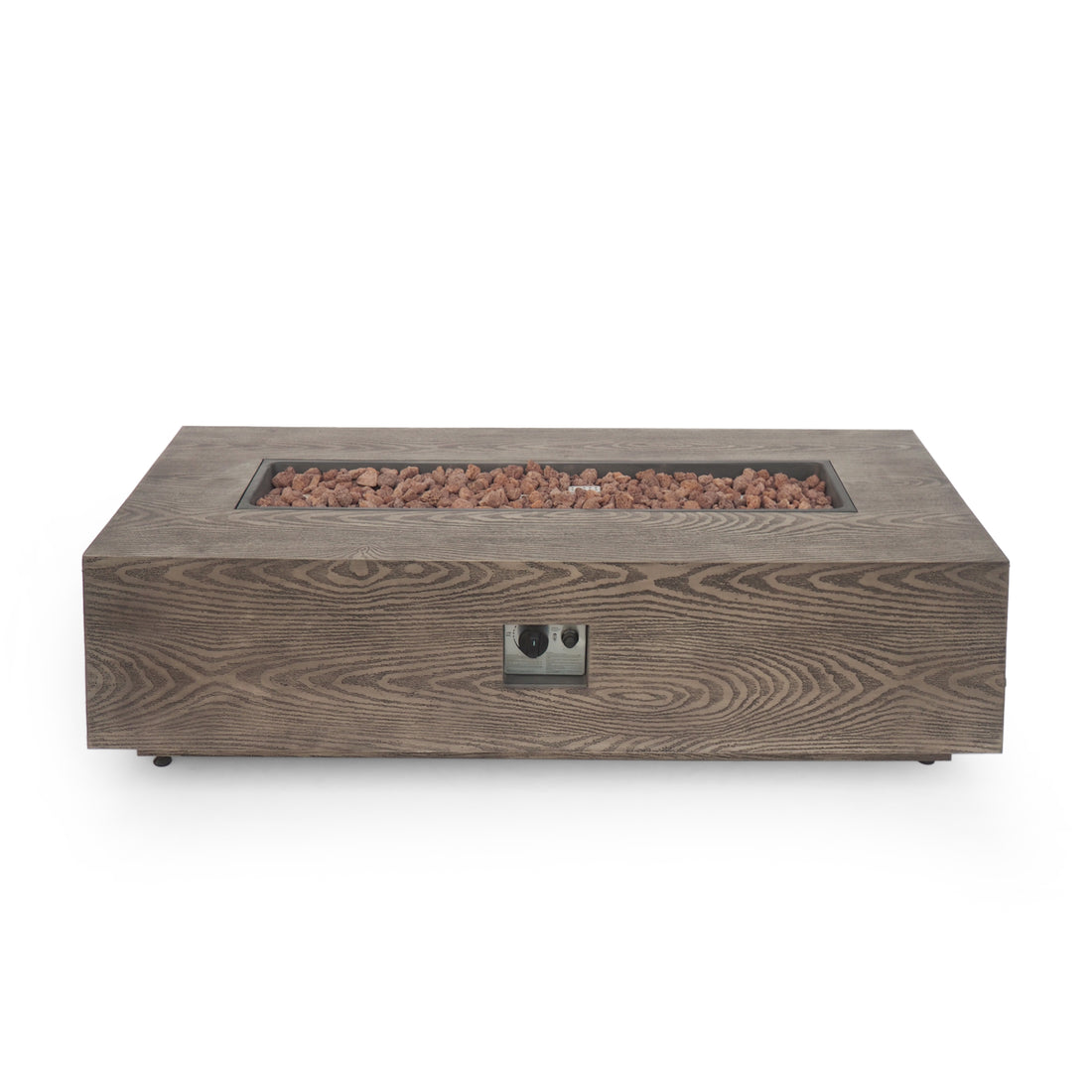 Outdoor Patio Propane Fire Pit Concrete Wood Pattern Fire Table 40, 000 Btu, 30'' H X 70'' W, Grey Grey Magnesium Oxide