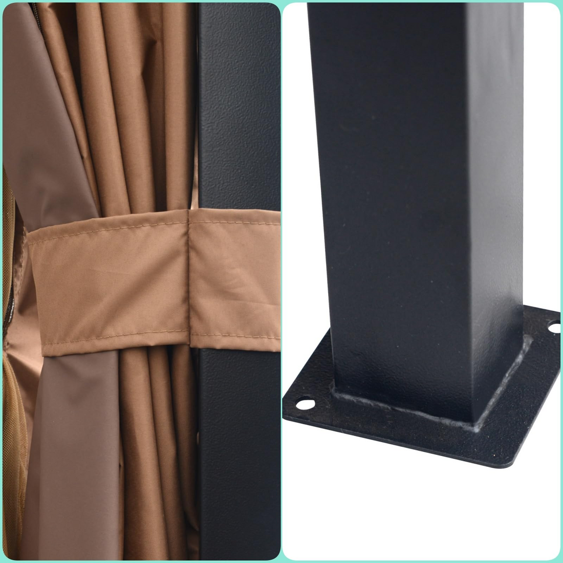 10X12 Softtop Metal Grill Gazebo With Mosquito Net&Sunshade Curtains,Heavy Duty Double Roof Canopy,Galvanized Steel Design Outdoor Tent,Suitable For Gardens,Patio,Backyard Beige Rectangular None Garden & Outdoor Water Resistant Gazebos Fabric Metal