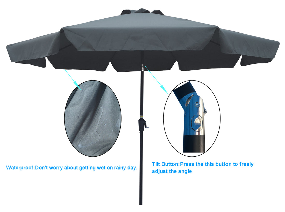 Name: Outdoor Patio Umbrella 10FT(3m) With Flap ,8pcs ribs,with tilt ,with crank,without base, grey/Anthracite,pole size...