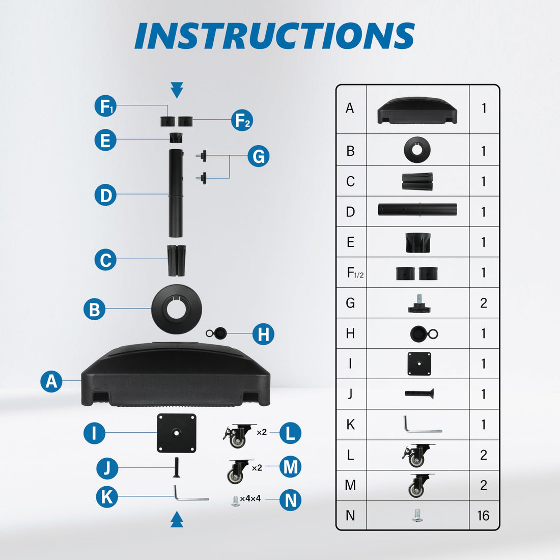 Name: 125lb Capacity Fillable Mobile Patio Umbrella Base Heavy Duty Square Market Stand for Outdoor...