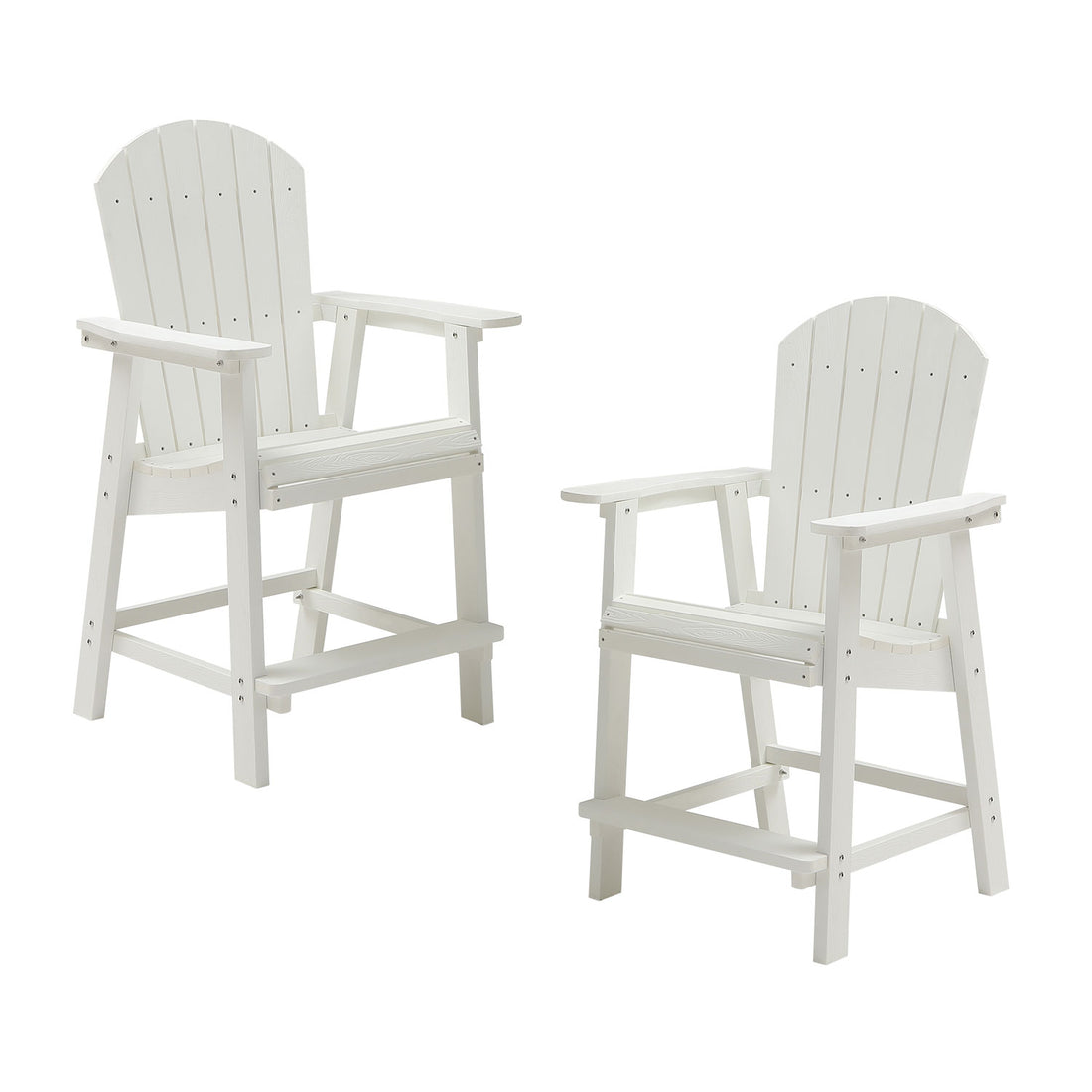 Hips Bar Chair With Armrest,Patio Bar Chair Set Of 2, White Matte White Hdpe
