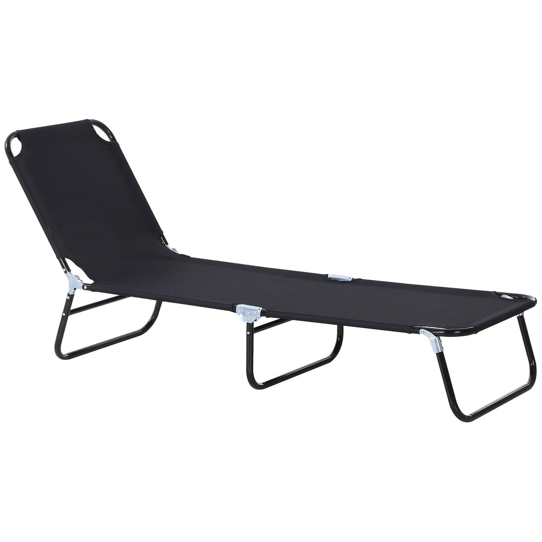 Outsunny Outdoor Lounge Chair, Patio Lounger With 5 Position Reclining Backrest And 2 Wheels For Poolside, Beach, Lawn, Black Black Steel