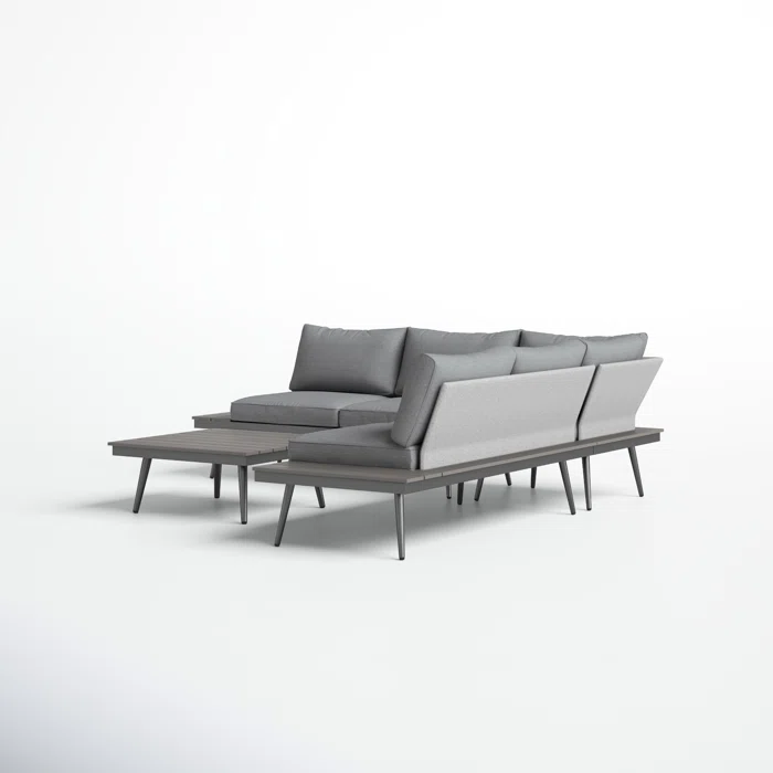 6 Piece Sofa Seating Group With Cushions, Wood Grained Pewter Polyester Aluminum