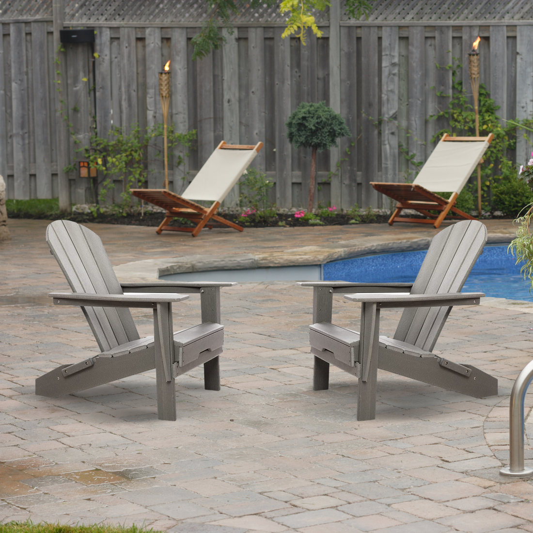 Hdpe Folding Adirondack Chair, Ultra Durable Weather Resistant Design, Easy Folding Design, 300 Lb Capacity, Grey Gray Hdpe