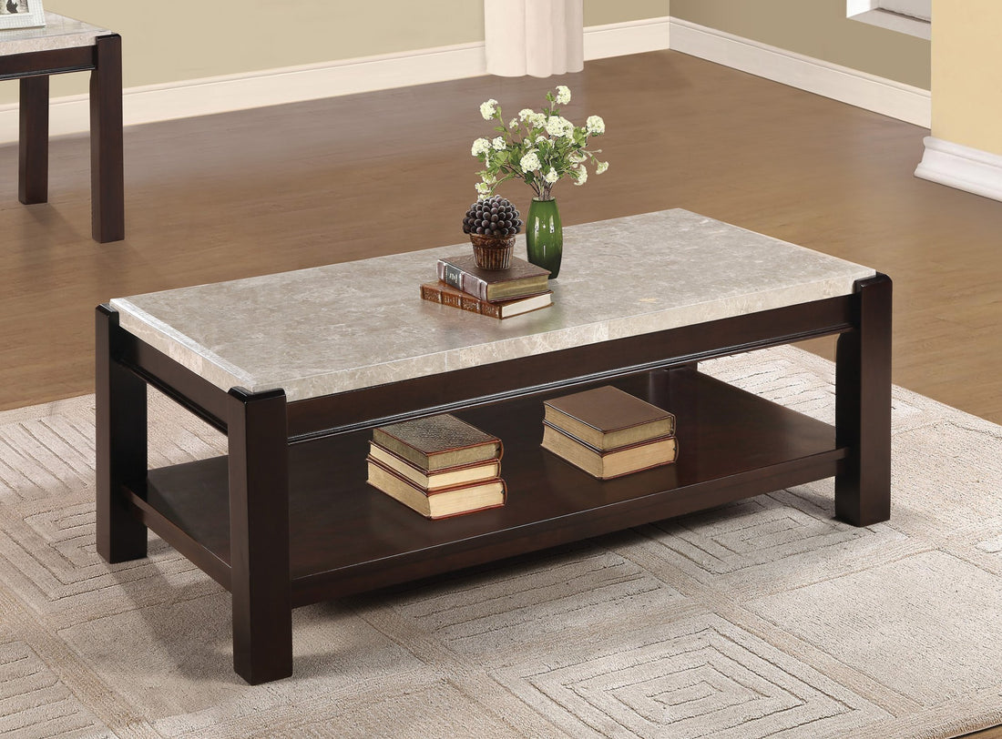 Name: Genuine Marble Top Cocktail Table Dark Cherry Finish Wood Frame Contemporary Living Room Furniture...