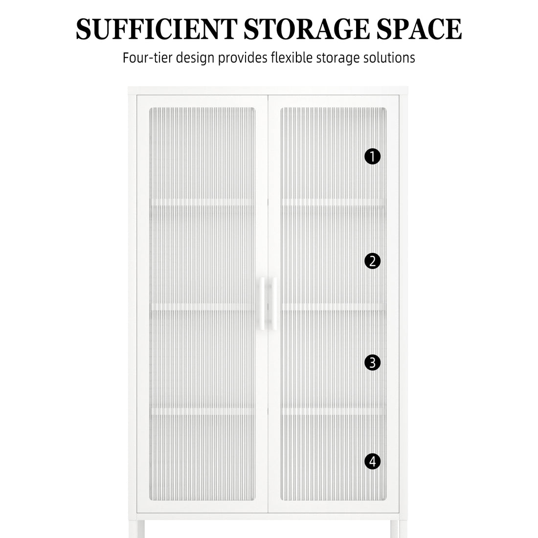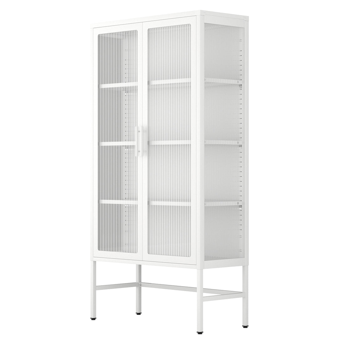 Double Glass Door Storage Cabinet With Adjustable Shelves And Feet Cold Rolled Steel Sideboard Furniture For Living Room Kitchen White White Tempered Glass
