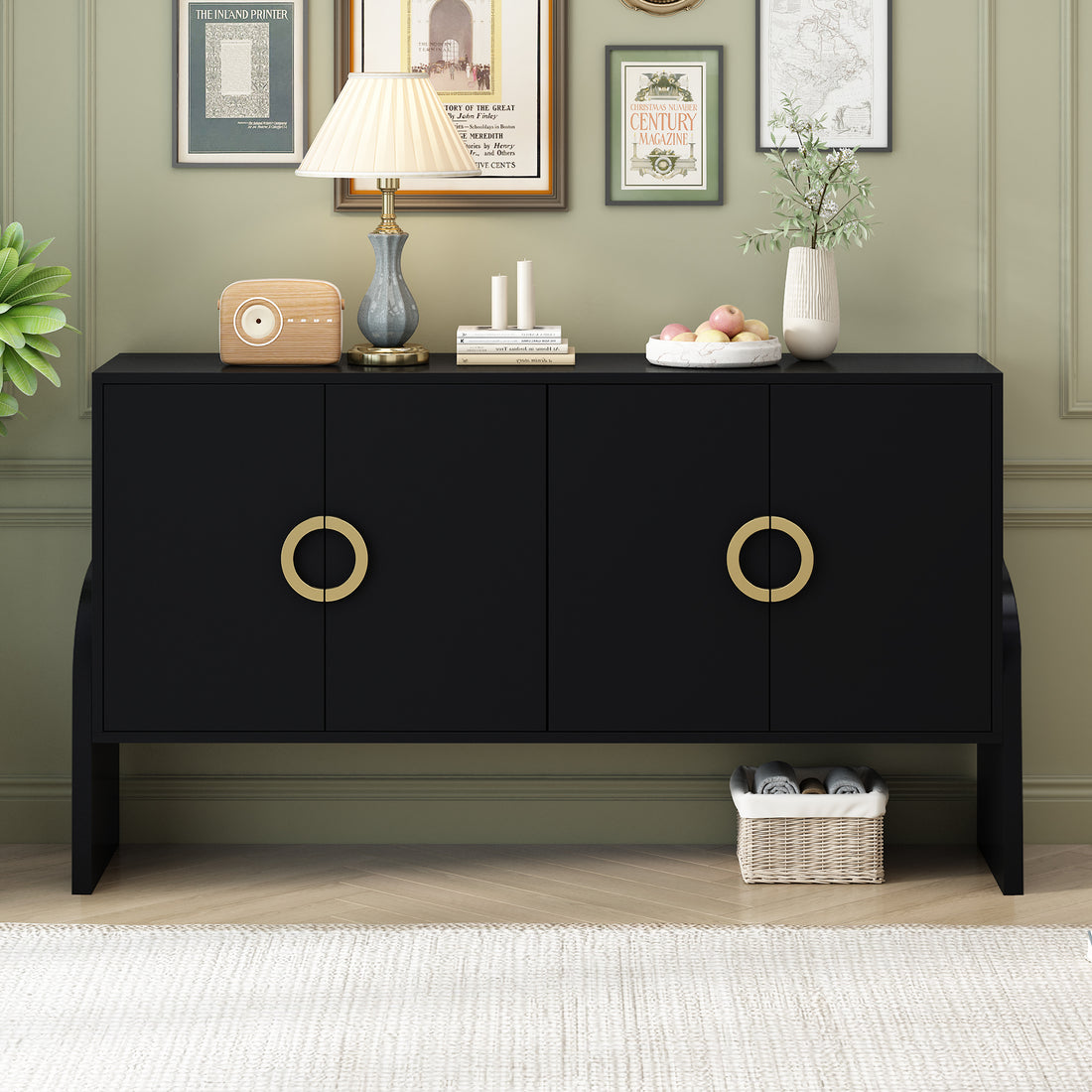 Four Door Metal Handle Storage Cabinet, Suitable For Study, Living Room, Adjustable Shelf Black Solid Wood Mdf