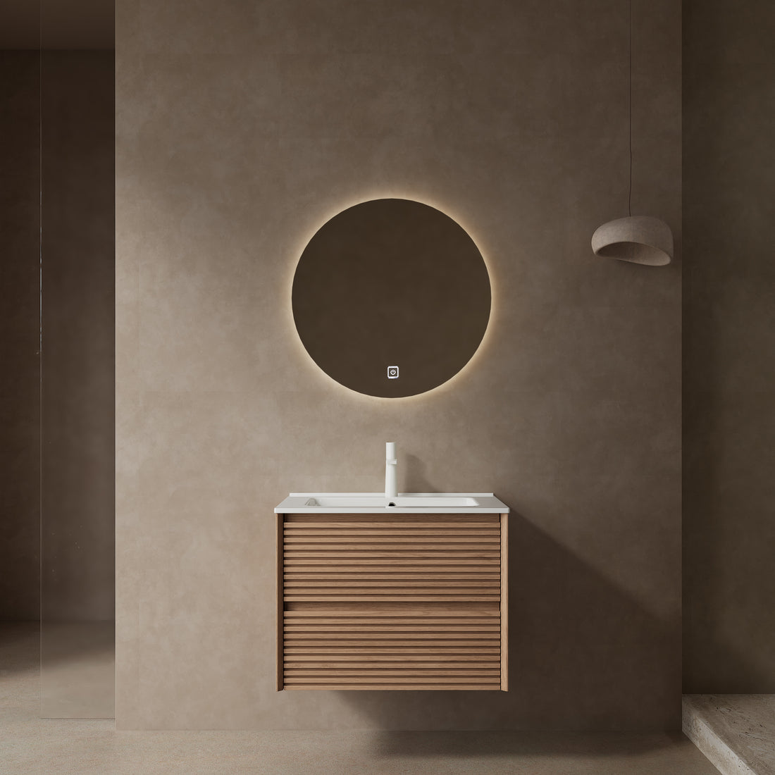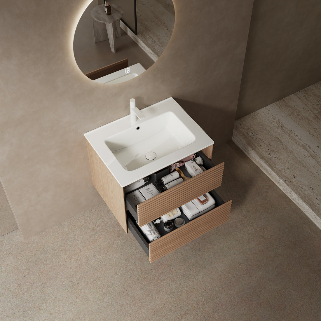 Bron 24" Bathroom Vanity With Sink, Modern Wall Mounted Floating Plywood Bathroom Storage Cabinet With 2 Drawers, White Ceramic Basin With Sink Hole Cover And Drain, Pre Assembled, Natural Walnut White Walnut Bathroom Modern Plywood Ceramic