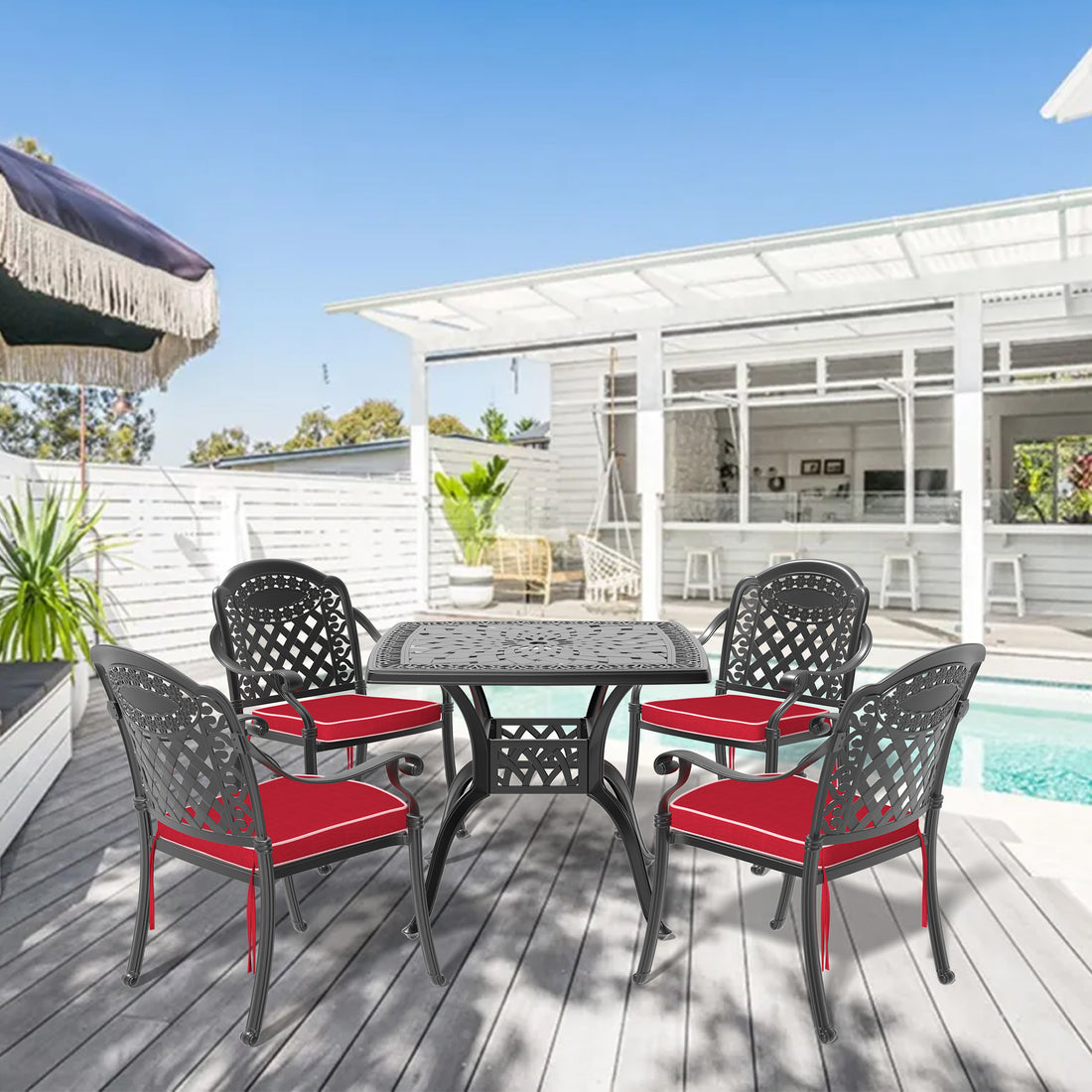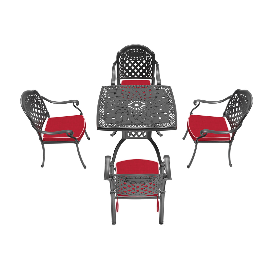 Cushions In Random Colors 5 Piece Set Of Cast Aluminum Patio Furniture With Cushions Yes Dining Set Black Seats 4 Rust Resistant Frame Water Resistant Cushion Garden & Outdoor Complete Patio Sets Aluminium