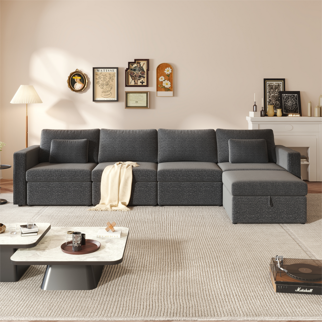 Modern Cotton Linen Modular Sectional Sofa, L Shape Convertible Sofa Set With Pillows, Oversized Sectional Couches With Storage Ottomans For Living Room, Loft, Apartment, Office Dark Gray 5 Seats Gray Wood Primary Living Space Medium Duty Pine 5 Seat