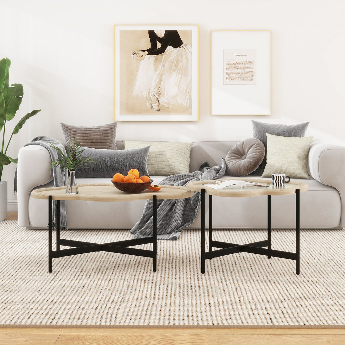 Cloud Coffee Table Set Of 2,Coffee Table ,End Table With Tempered Changrainbow Glass For Living Room, Bedroom ,Office, Balcony Natural Wood Temptered Glass Stainless Steel Mdf