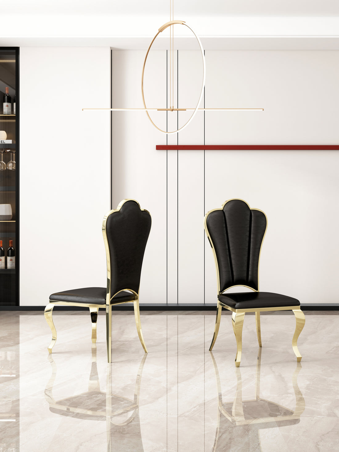 Moderndining Chairs Set Of 2, Unique Backrest Design With Stripe Armless Chair Black Pu Leather