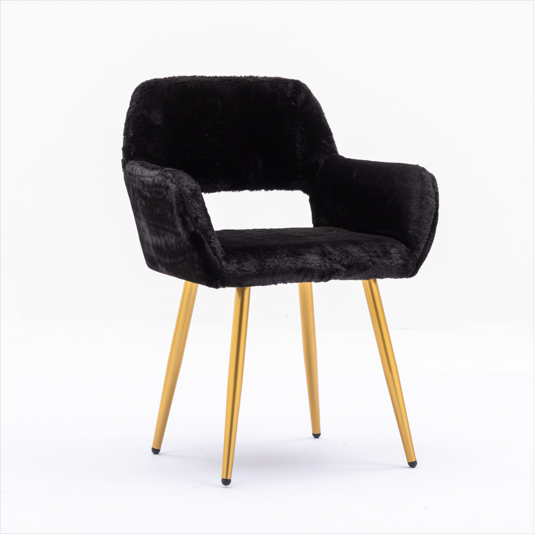 Hengming Dining Chairs With Faux Fur, Mid Century Side Chairs With Solid Painting Steel Leg For Dining Room Black Faux Fur