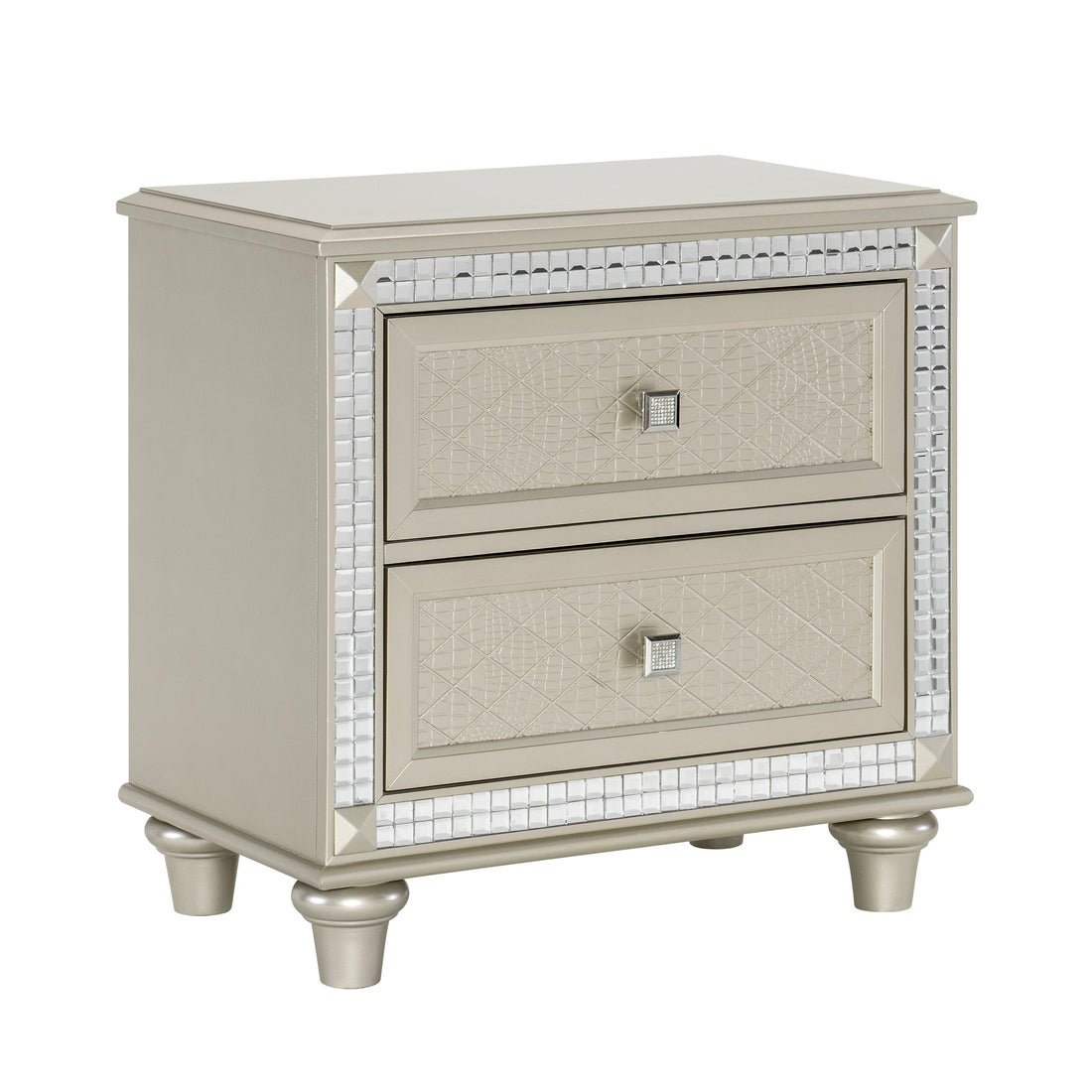 Name: Glamorous Style Bedroom Furniture 1pc Nightstand of 2x Drawers Champagne Finish Acrylic Crystals Trim...