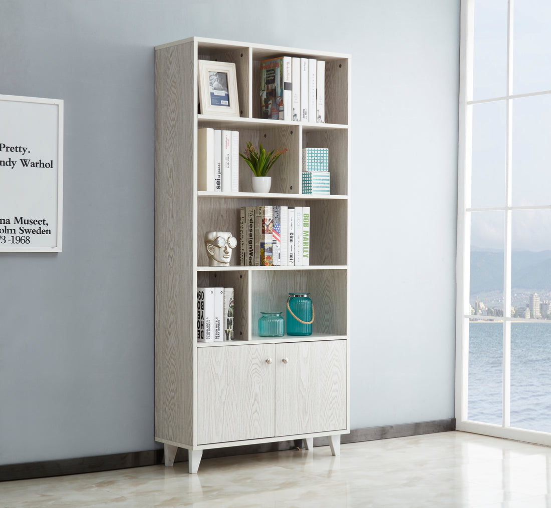 Bookcase, Bookshelf With Doors, White White Closed Back Wood With Doors Mdf