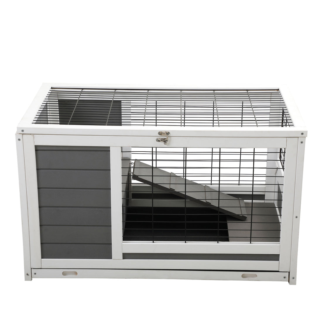Luxury 2 Storey Pet House Box Wooden Cage Comfy Cabin For Small Animals, Grey White Grey Wood