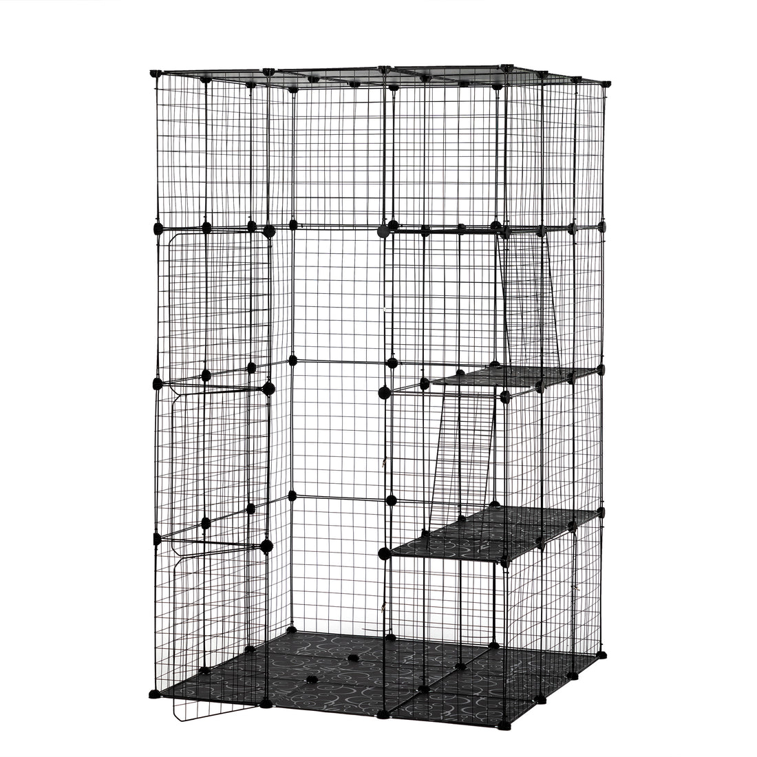 3 Tier Wire Cat Cage, Large Kennels Playpen With 3 Platforms, 3 Ramp Ladders And 4 Doors, Black Black Metal