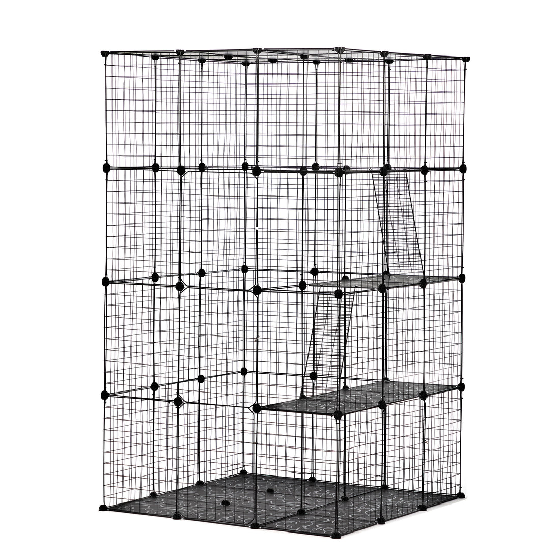 Name: 4-Story Pet Cage, Bunny Hutch with Ladder, Lockable Wheels and Removable Tray, Black and...