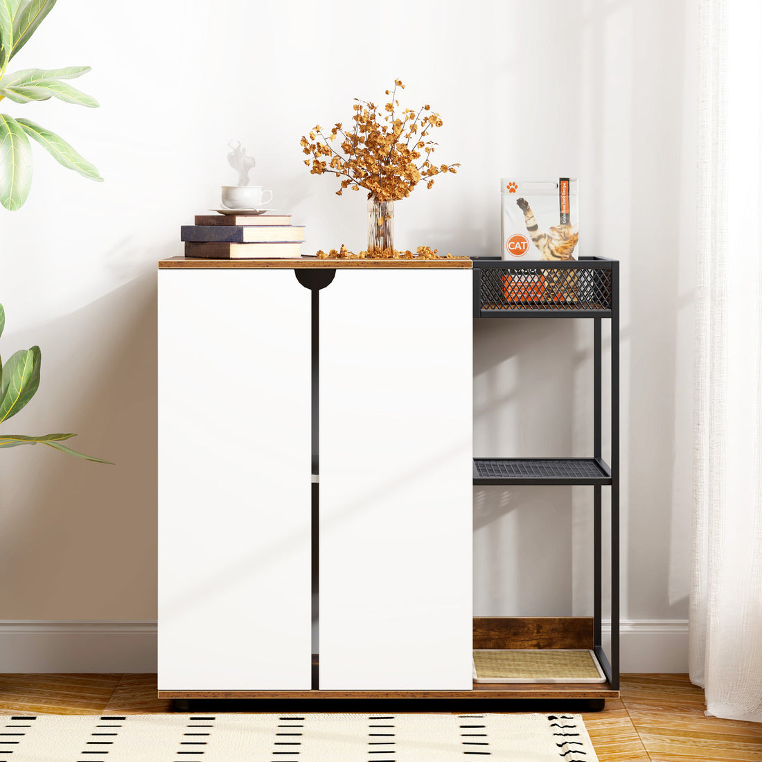 Litter Box Enclosure For 2 Cats.Cat Litter Box Furniture,Enclosed Cat Litter Boxes,Cat Furniture Cabinet,Rustic Brown White Walnut Particle Board