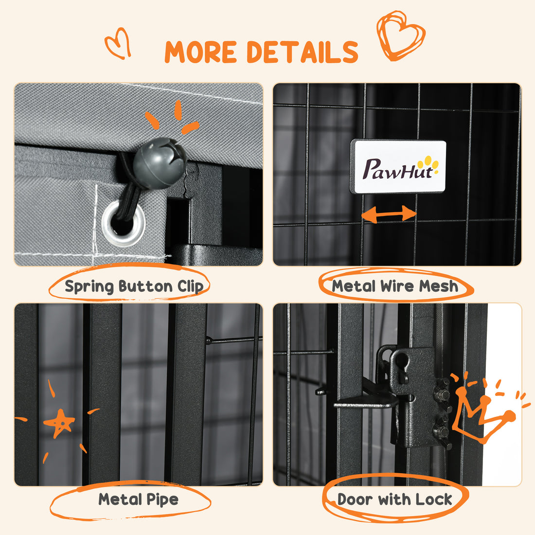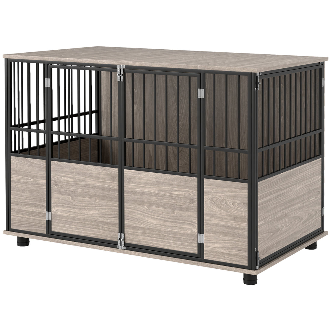Pawhut Dog Crate Furniture, Wooden End Table Furniture With Lockable Magnetic Doors, Extra Large Size Pet Kennel Indoor Animal Cage, Gray Gray Particle Board