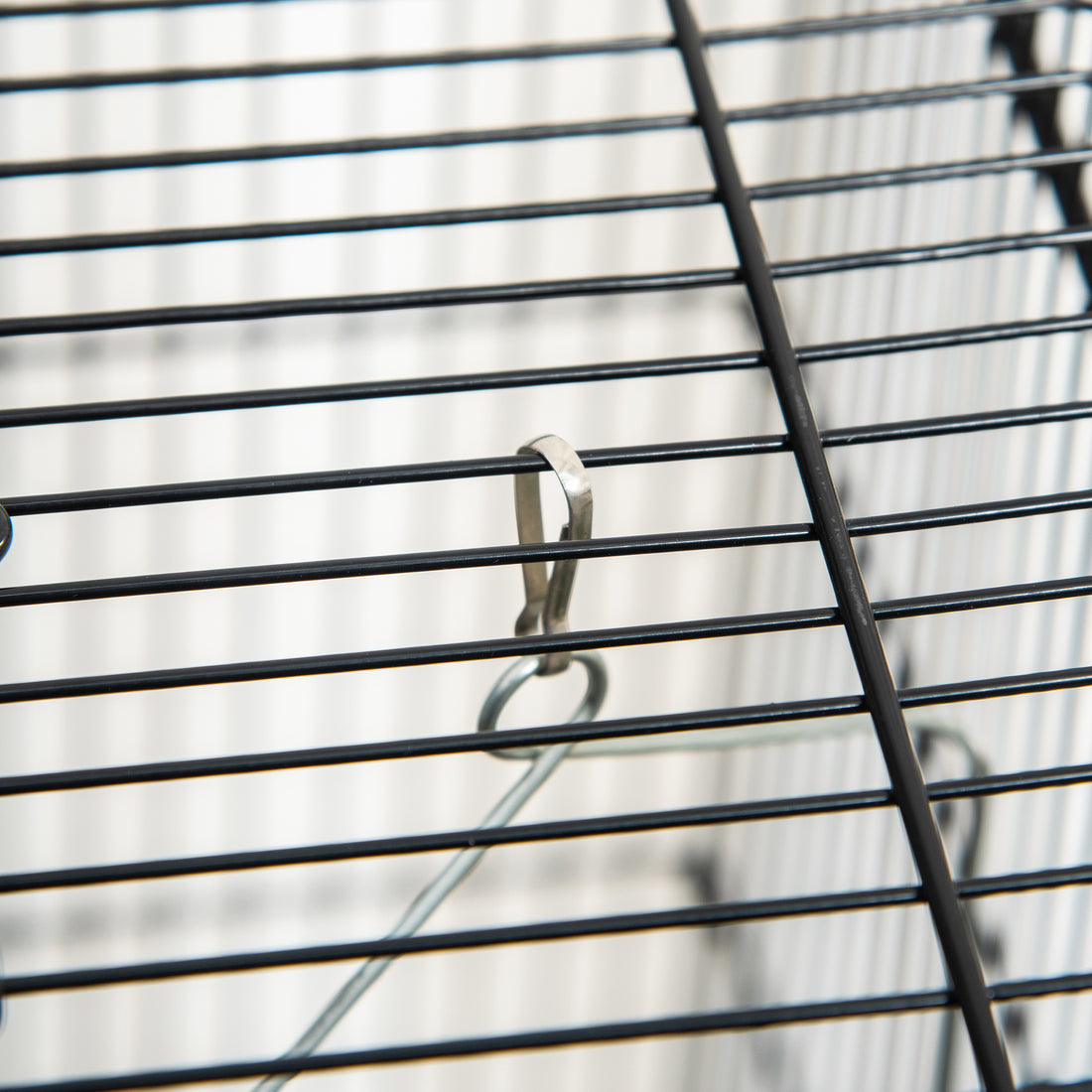 Pawhut 45 Inch Metal Indoor Bird Cage, Parrot Cage, Bird Aviary With Detachable Rolling Stand, Storage Basket, And Accessories Black Black Metal