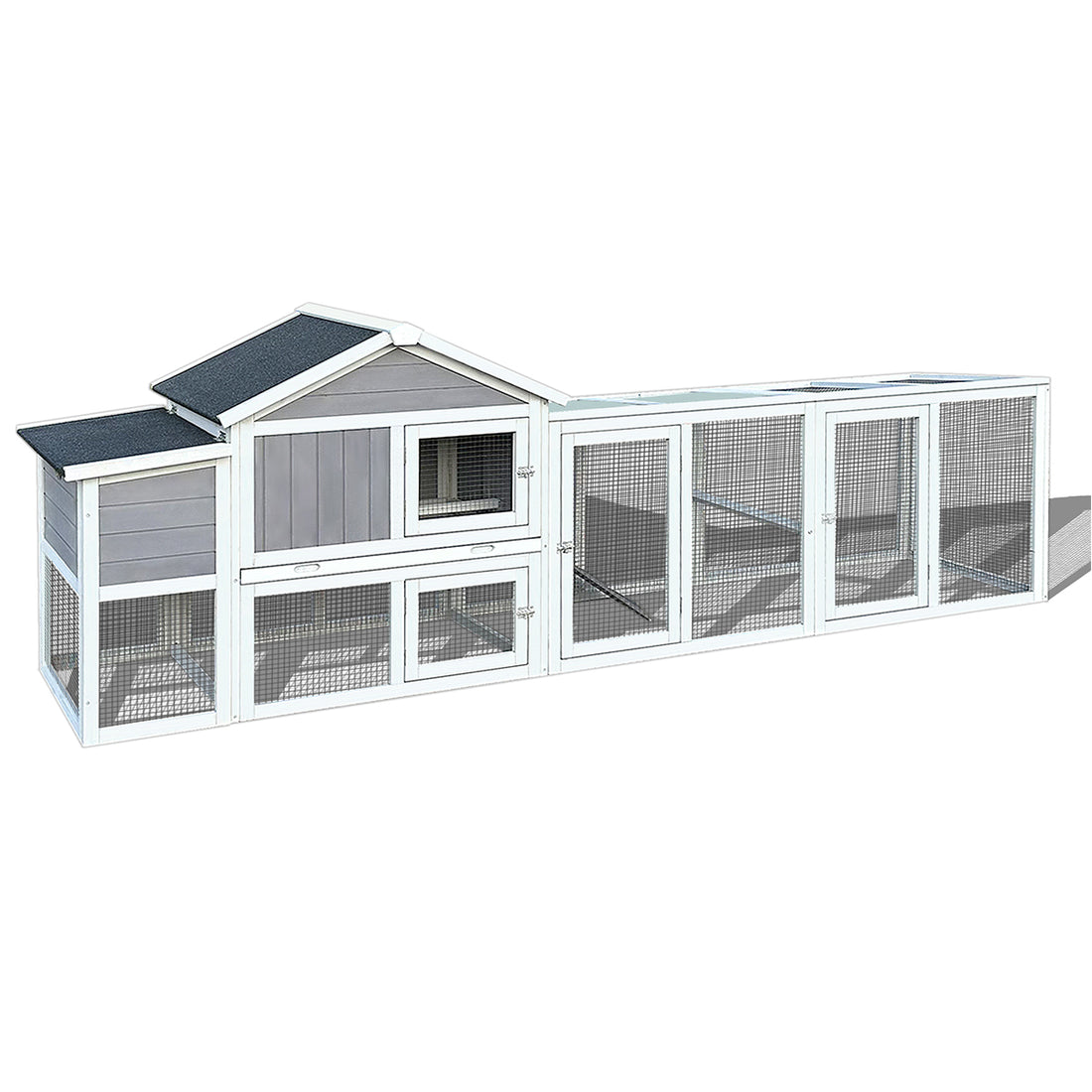 111.5" Wooden Chicken Coop, Large Hen House With Nesting Box Poultry Cage, Rabbit Hutch Bunny Cagewaterproof Uv Panel For Backyard Grey Wood