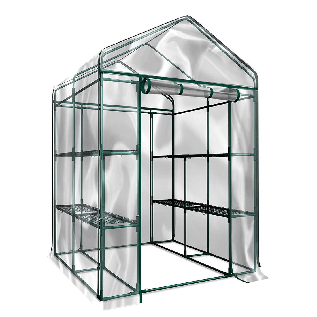 Outdoor 56" W X 56" D X 76" H Green House ,Walk In Plant Gardening Greenhouse With 2 Tiers 8 Shelves Transparent Cover Transparent Metal
