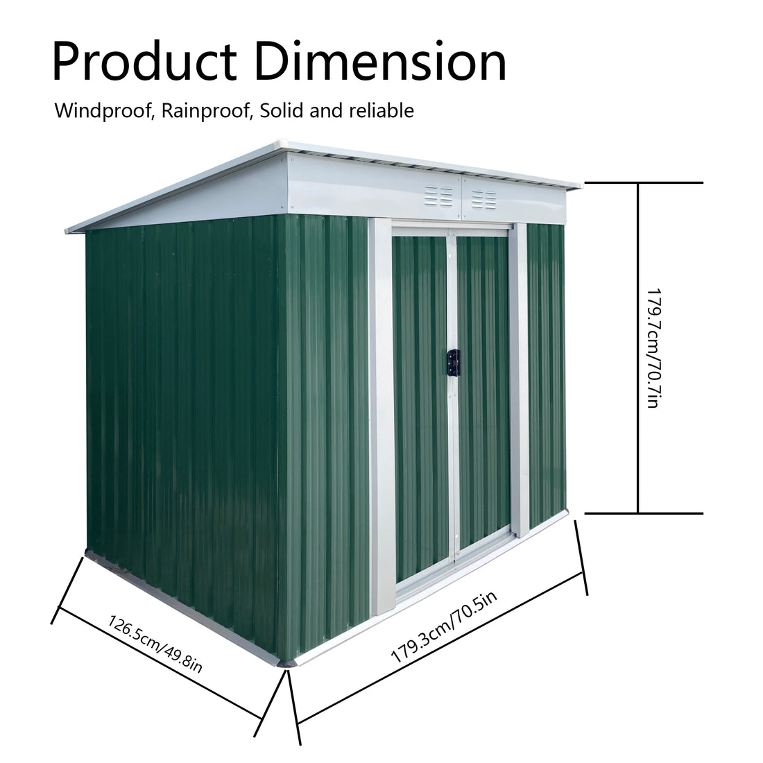 Outdoor Storage Sheds 6Ftx4Ft Pent Roof Green Green Garden & Outdoor Metal