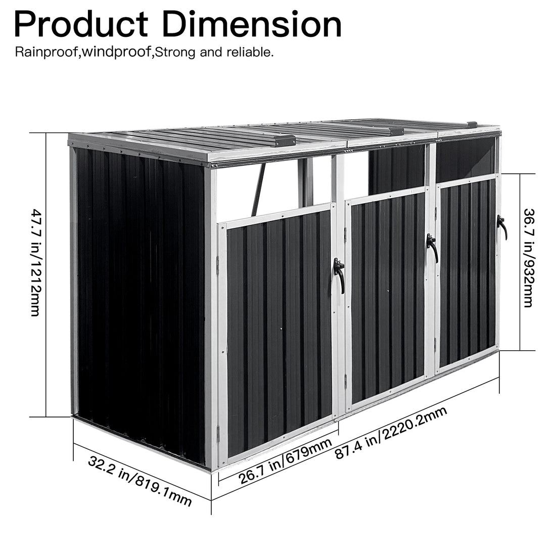 Name: Garbage Bin Shed Stores 3 Trash Cans Metal Outdoor Bin Shed for Garbage Storage,Grey...