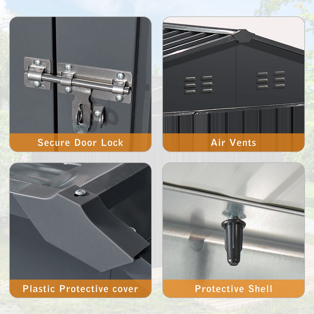 Outdoor Storage Shed 5.7X3 Ft,Metal Outside Sheds&Outdoor Storage Galvanized Steel,Tool Shed With Lockable Double Door For Patio,Backyard,Garden,Lawn 5.7X3Ft, Black Black Metal