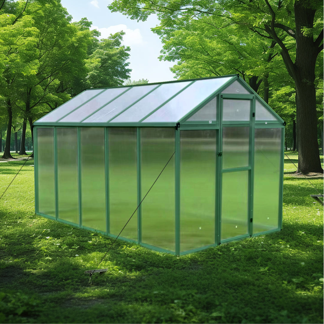 8X6Ft Green Double Door Polycarbonate Greenhouse Raised Base And Anchor Aluminum Heavy Duty Walk In Greenhouses For Outdoor Backyard In All Season Green Aluminum