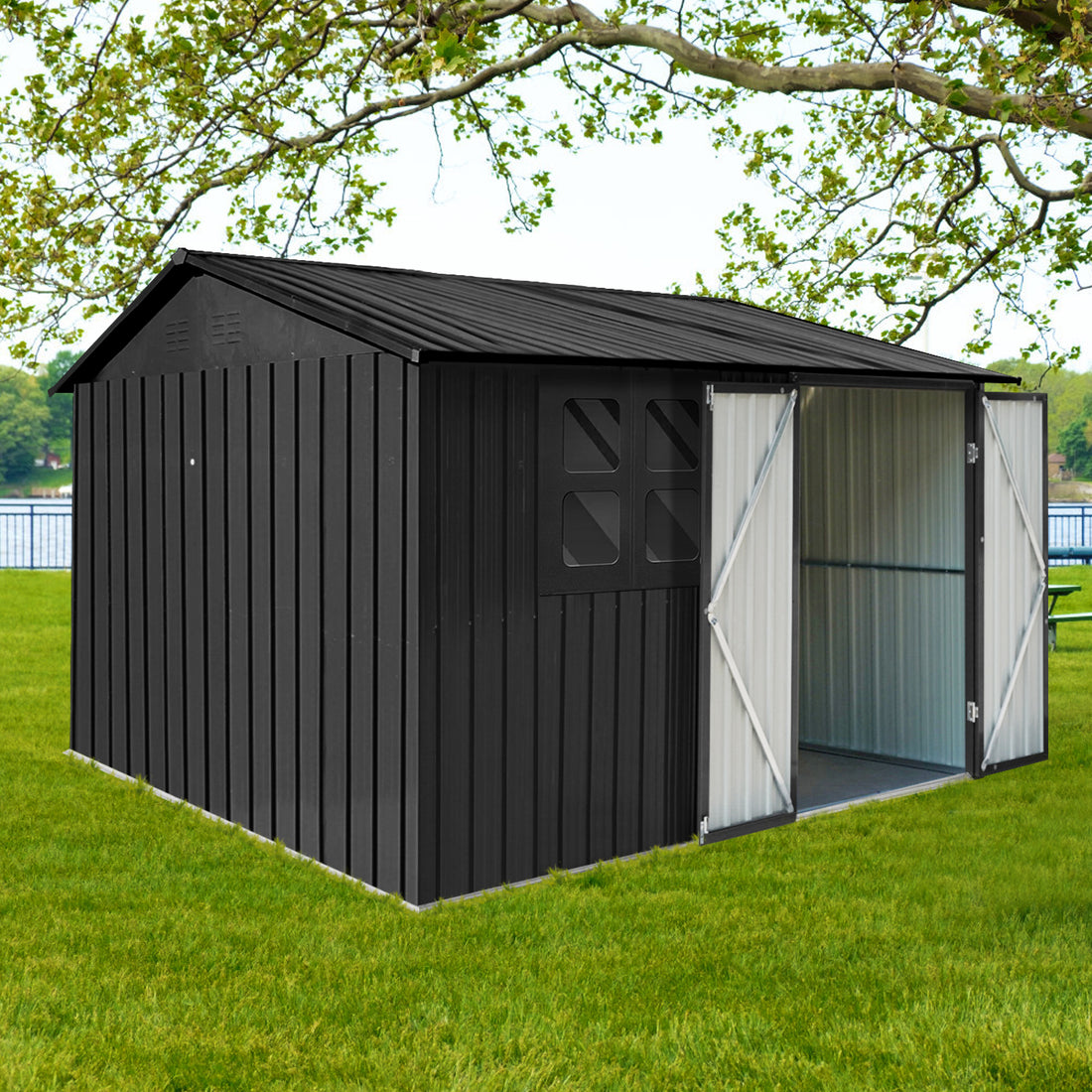 Outdoor Storage Shed, 8' X 6' Galvanized Steel Garden Shed With 4 Vents & Double Sliding Door, Utility Tool Shed Storage House For Backyard, Patio, Lawn Dark Gray Garden & Outdoor Metal