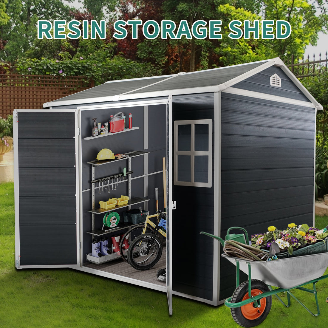 Name: 8x6ft Outdoor Resin Garden Shed with Floor and 2 Windows, Plastic Patio Outdoor Storage...