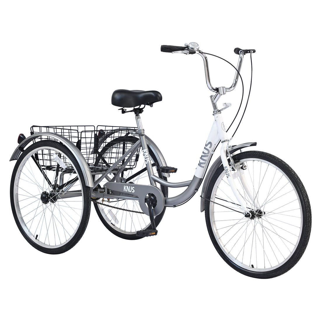 Adult Tricycle Trikes,3 Wheel Bikes,24 Inch Wheels Cruiser Bicycles With Large Shopping Basket For Women And Men Silver Steel