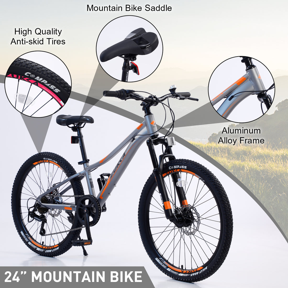 Mountain Bike For Girls And Boys Mountain 24 Inch Shimano 7 Speed Bike Grey Aluminium