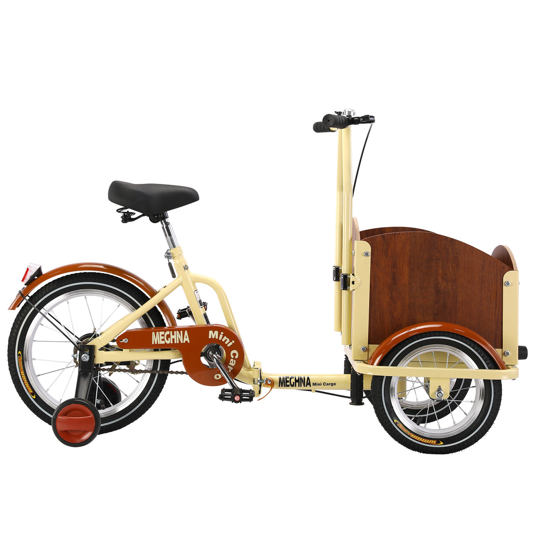 Foldable Tricycle For Kids Ages 6 12,Mini Cargo Bike,Pet Bike,Reverse Tricycle,Outdoor Parent Child Bike For Travel,With Cargo Basket And Training Wheels. Beige Steel