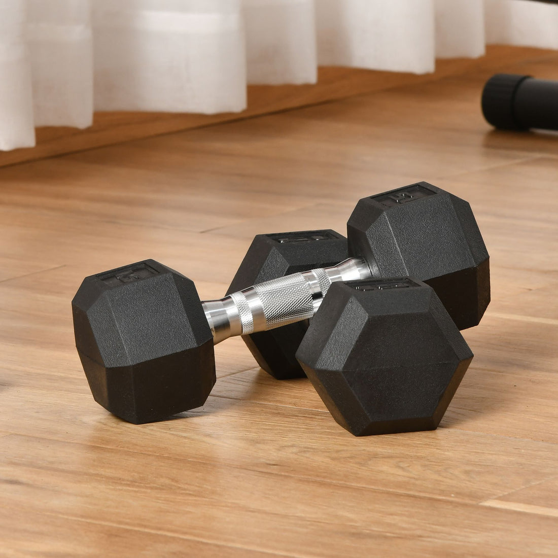 Soozier 2 X 15Lbs Hex Dumbbell Set Of 2, Rubber Weights Exercise Fitness Dumbbell With Non Slip Handles, Anti Roll, For Women Or Men Home Gym Workout Black Steel