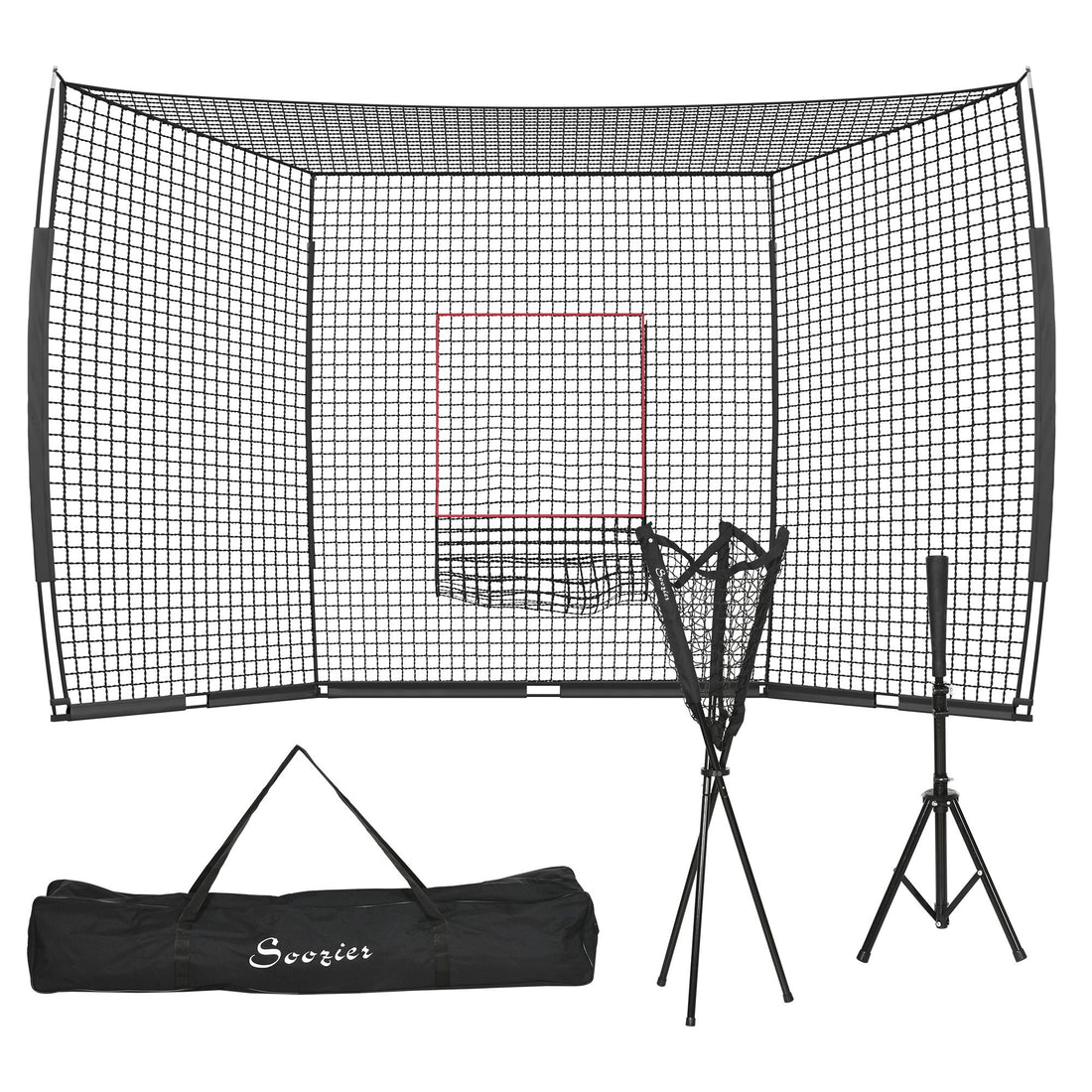 Soozier 17' X 5.5' Baseball Net With Strike Zone, Tee, Caddy, And Carry Bag For Pitching And Hitting, Portable Extra Large Softball And Baseball Training Equipment Black Steel