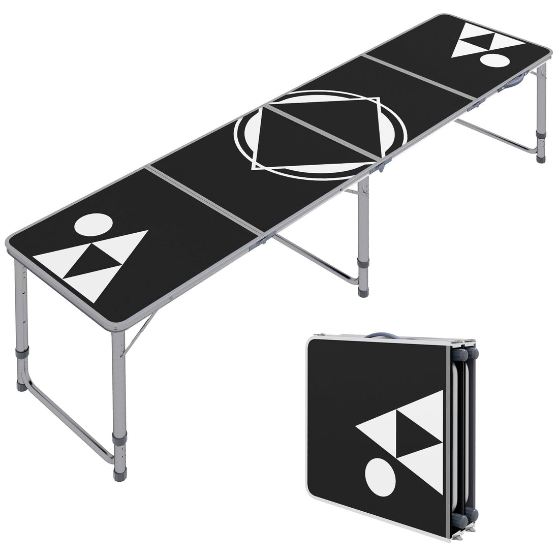 Outsunny 8Ft Portable Beer Pong Table With Adjustable Legs, Folding Camping Table, Aluminum Picnic Table, For Party, Travel, Bbq, Beach, Black And White Black Aluminum