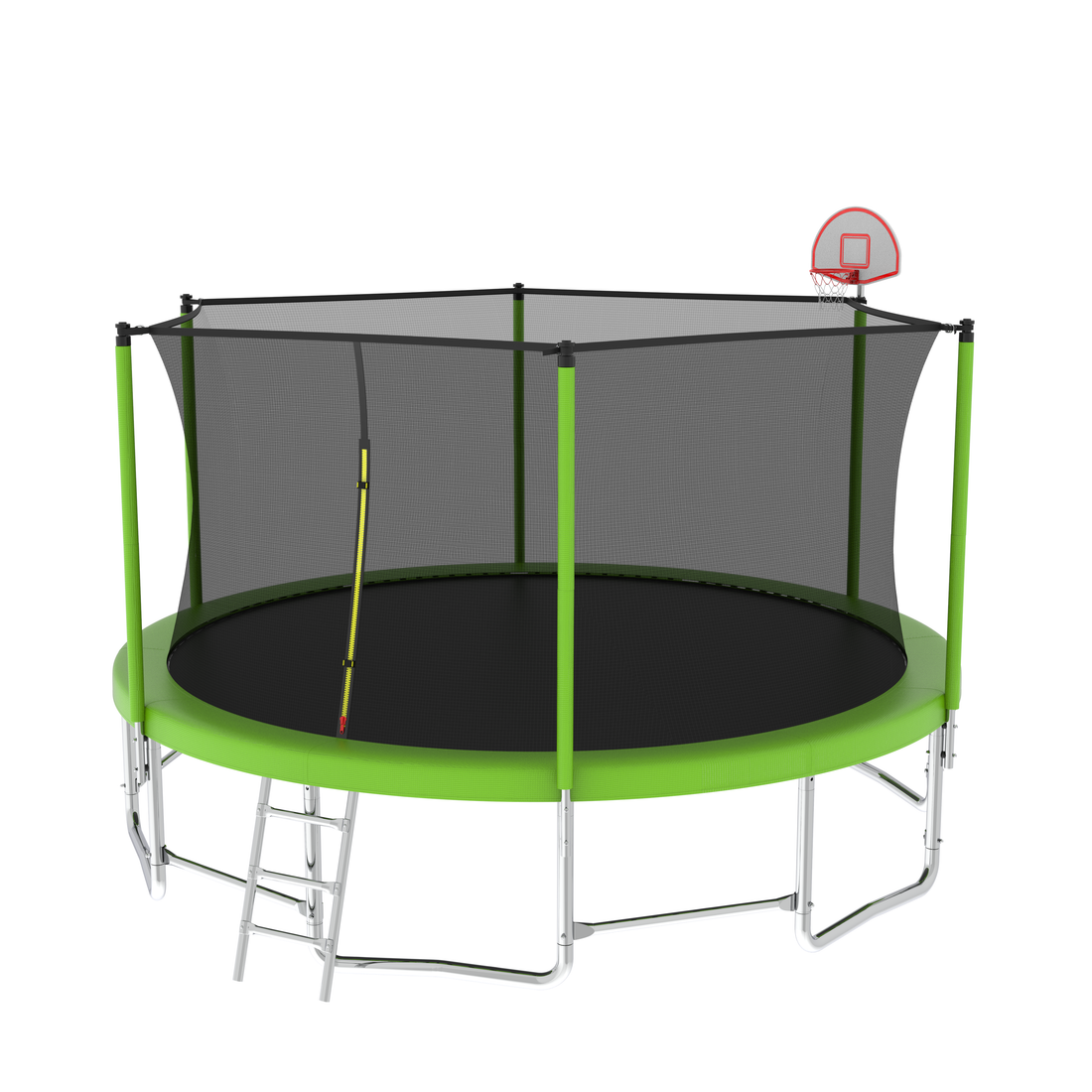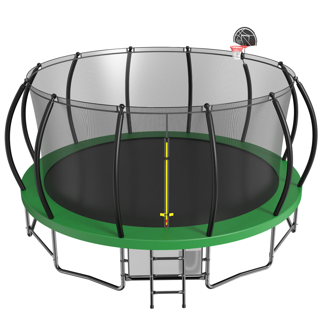 Name: 14ft Trampoline with Basketball Hoop Inflator and Ladder(Inner Safety Enclosure) Green Characteristics: Our trampolines...