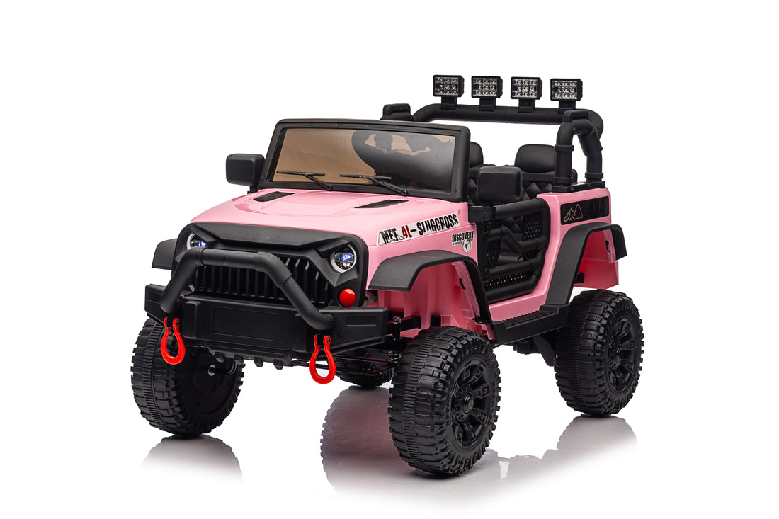 24V Power 4 Wheels W Remote Control, 3 Speeds, Bluetooth Music, Led Lights, Spring Suspension, Electric Vehicles Jeeps Toy For Boys Girls Pink Abs