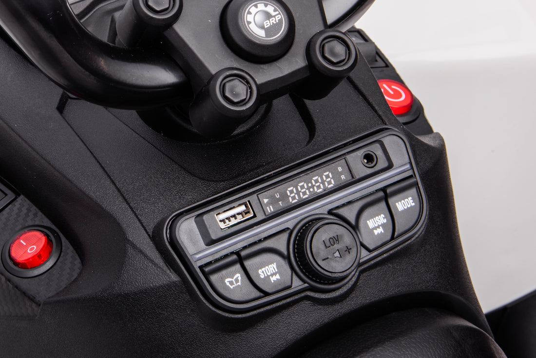 Kids Atv 24V, Licensed Brp Can Am Two Seater Ride On Cars For Kids W 4X200W Powerful Motor, Bluetooth, Led Lights, Usb, Spring Suspension, White White Abs