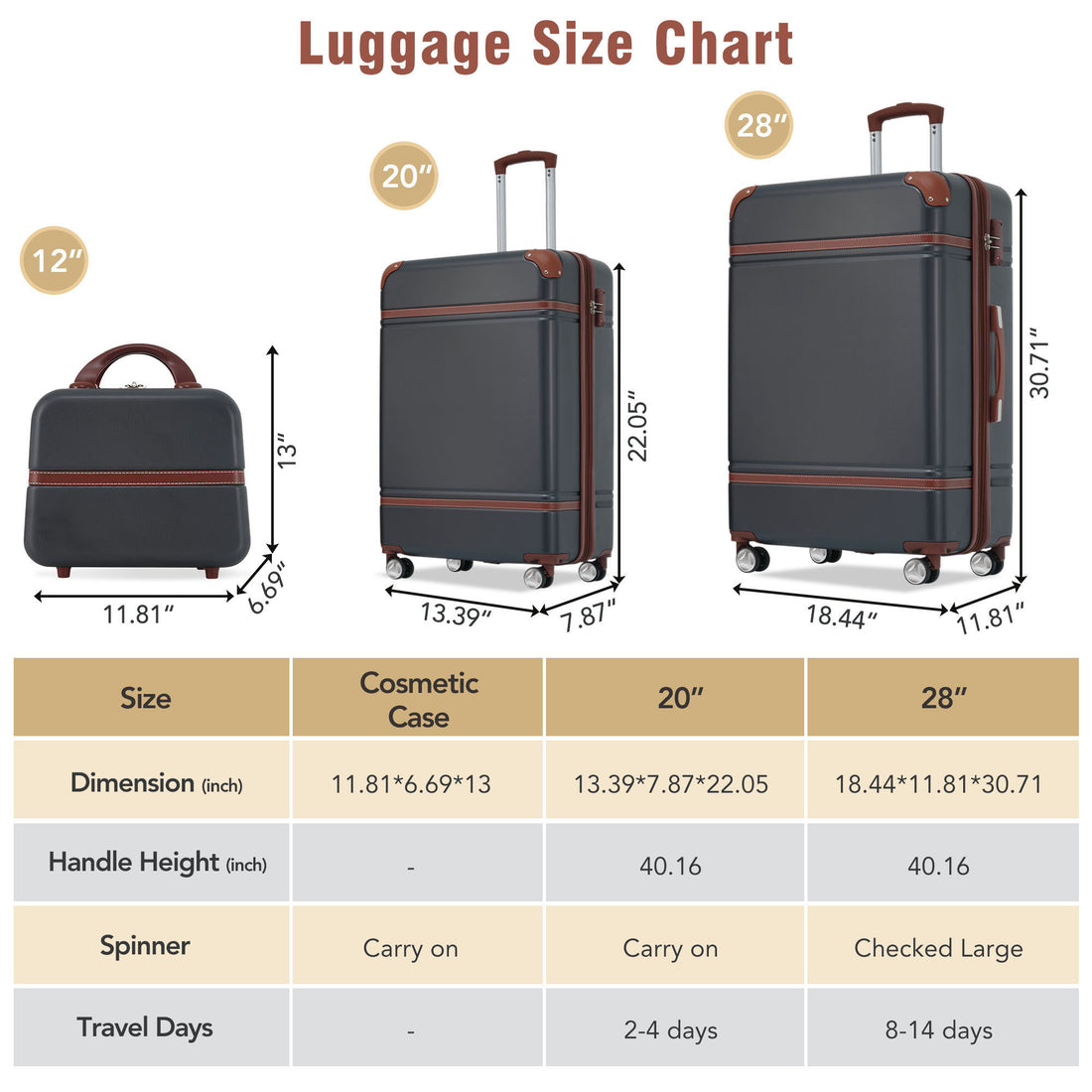 Name: Hardshell Luggage Sets 3 Pieces 20"+28" Luggages and Cosmetic Case Spinner Suitcase with Tsa...