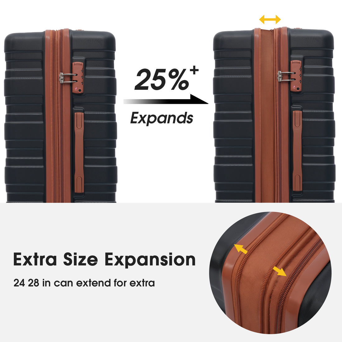 Luggage Sets Model Expandable Abs Hardshell 3Pcs Clearance Luggage Hardside Lightweight Durable Suitcase Sets Spinner Wheels Suitcase With Tsa Lock 20''24''28'' Black And Brown Black Brown Abs