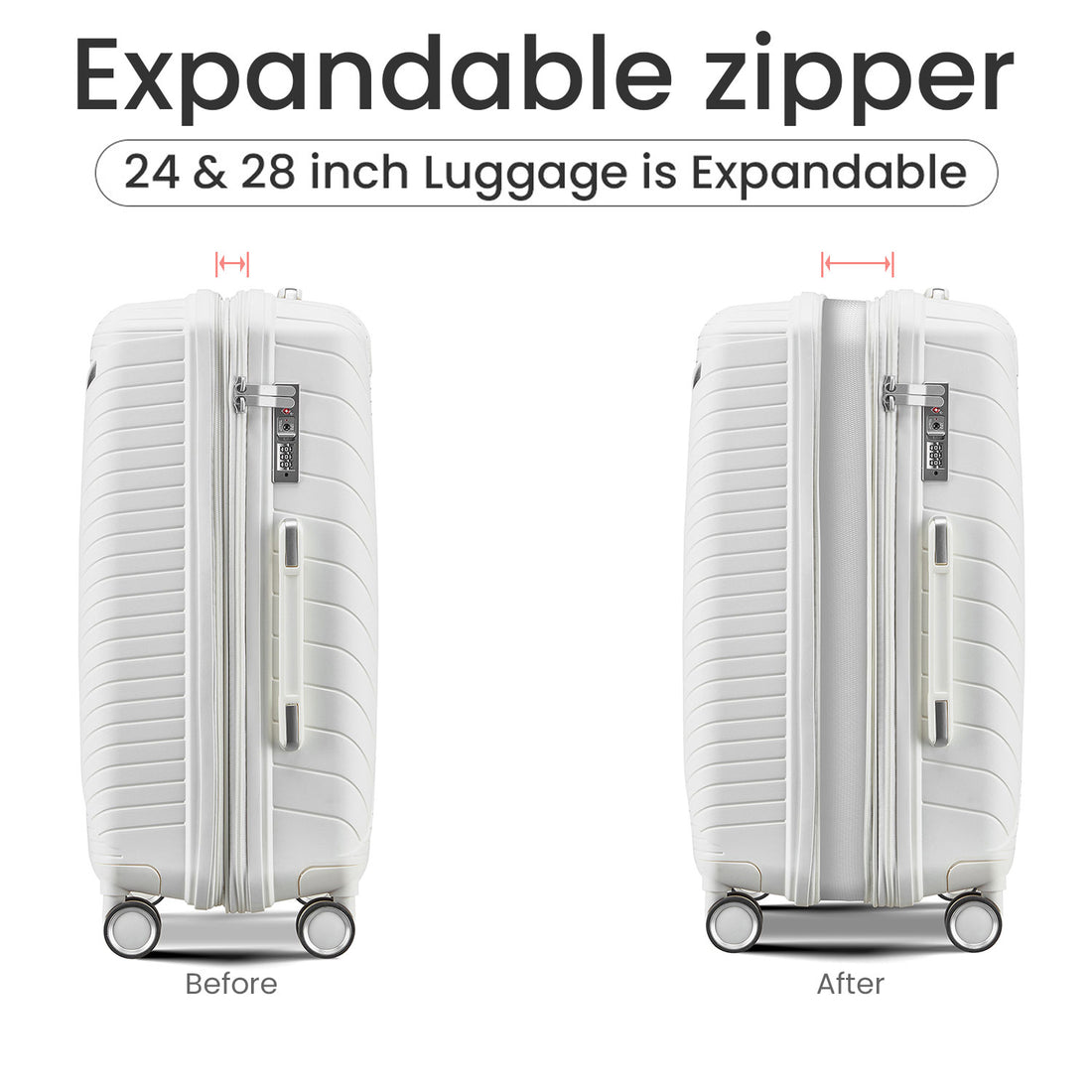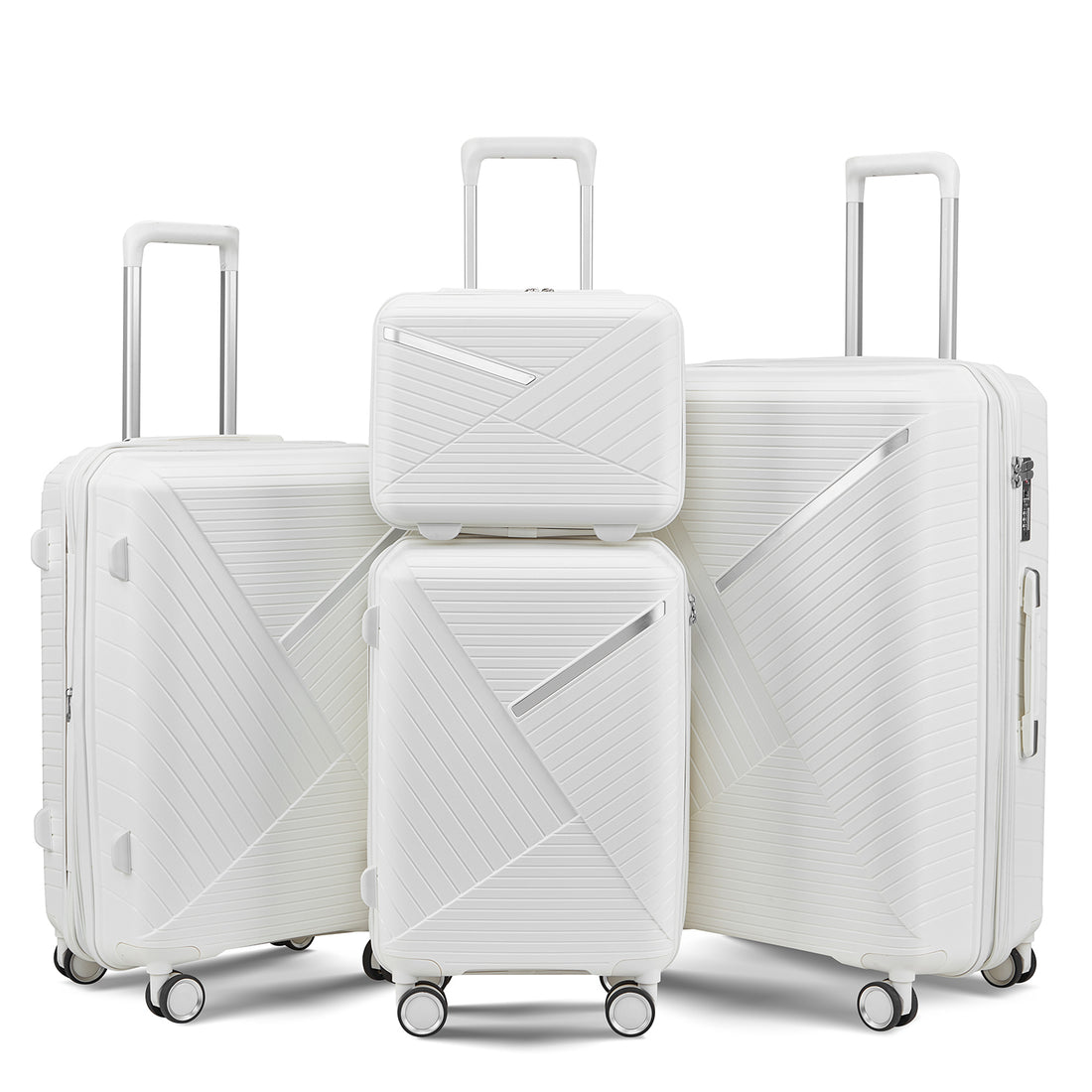 Luggage Sets 4 Piece 14 20 24 28 , Expandable Lightweight Suitcase With 4 Double 360 Degrees Mute Spinner Wheels Pp Materials Durable Tsa Lock Travel Luggage White Polypropylene