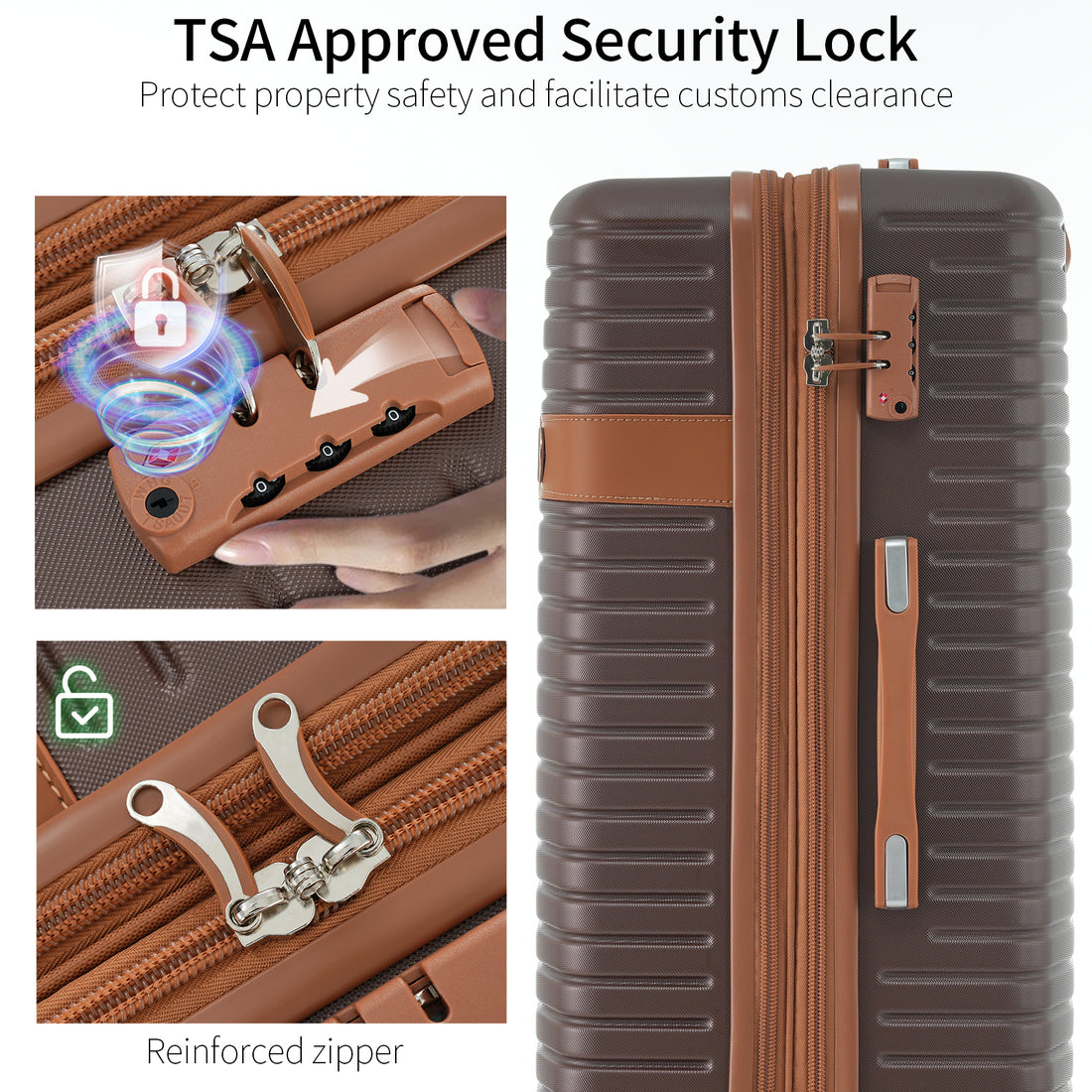 Luggage Set Of 3, 20, 24, 28Inch With Usb Port, 20, 24Inch With Front Opening Design Airline Certified Carry On Luggage With Cup Holder, Abs Hard Shell Luggage With Spinner Wheels, Black And Brown Black Abs